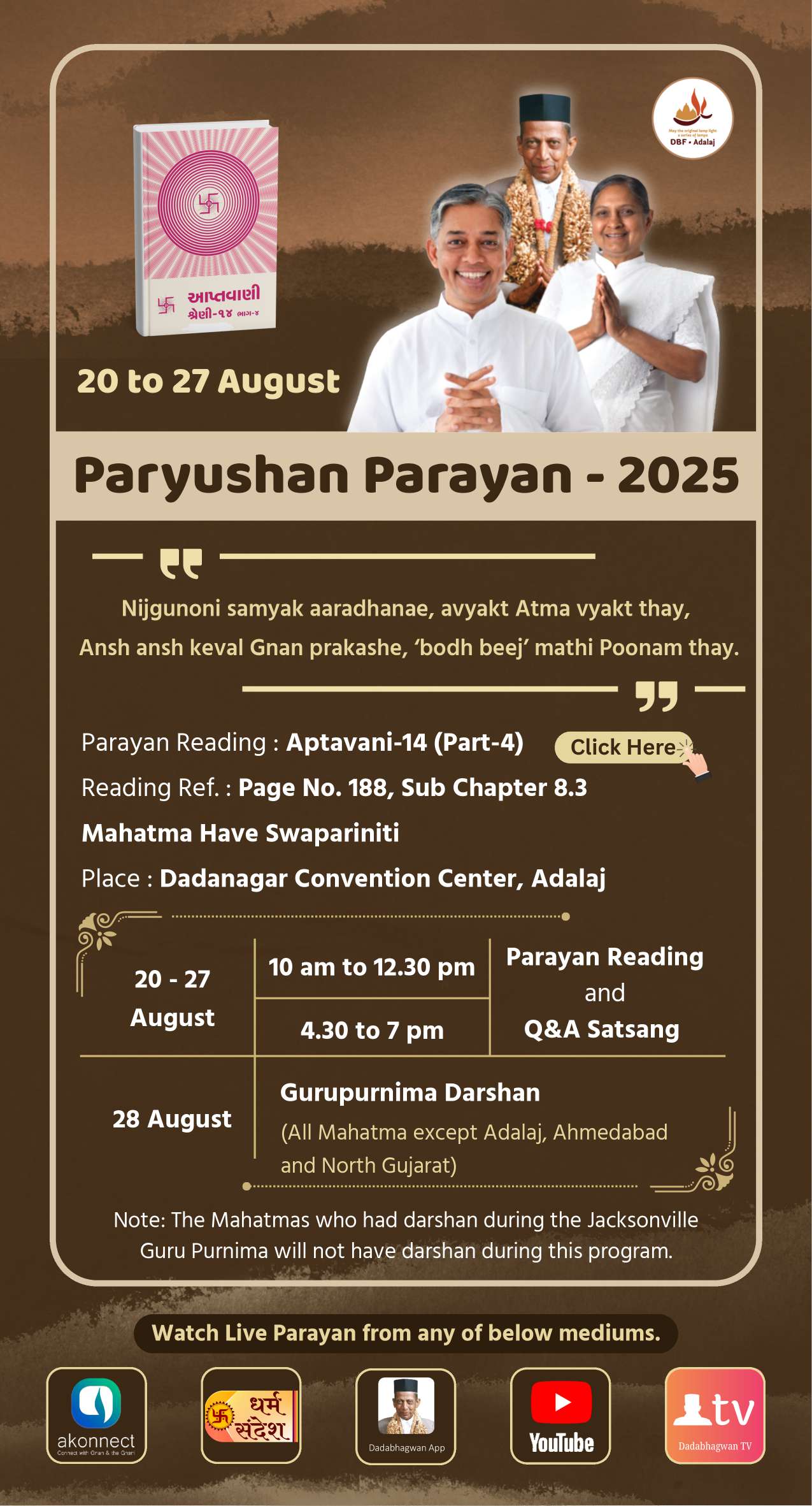 Start: 04-Jul-2024 End: 10-Jul-2024Location: Adalaj Seva Form: Live